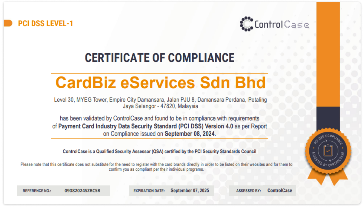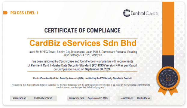 CardBizPay is PCI DSS Level 1 compliant—the highest level of security certification—ensuring that sensitive cardholder data is stored and processed securely. Whether you’re running a small business or managing large-scale operations, CardBizPay offers a secure and reliable payment solution, giving your customers peace of mind while shopping with you.